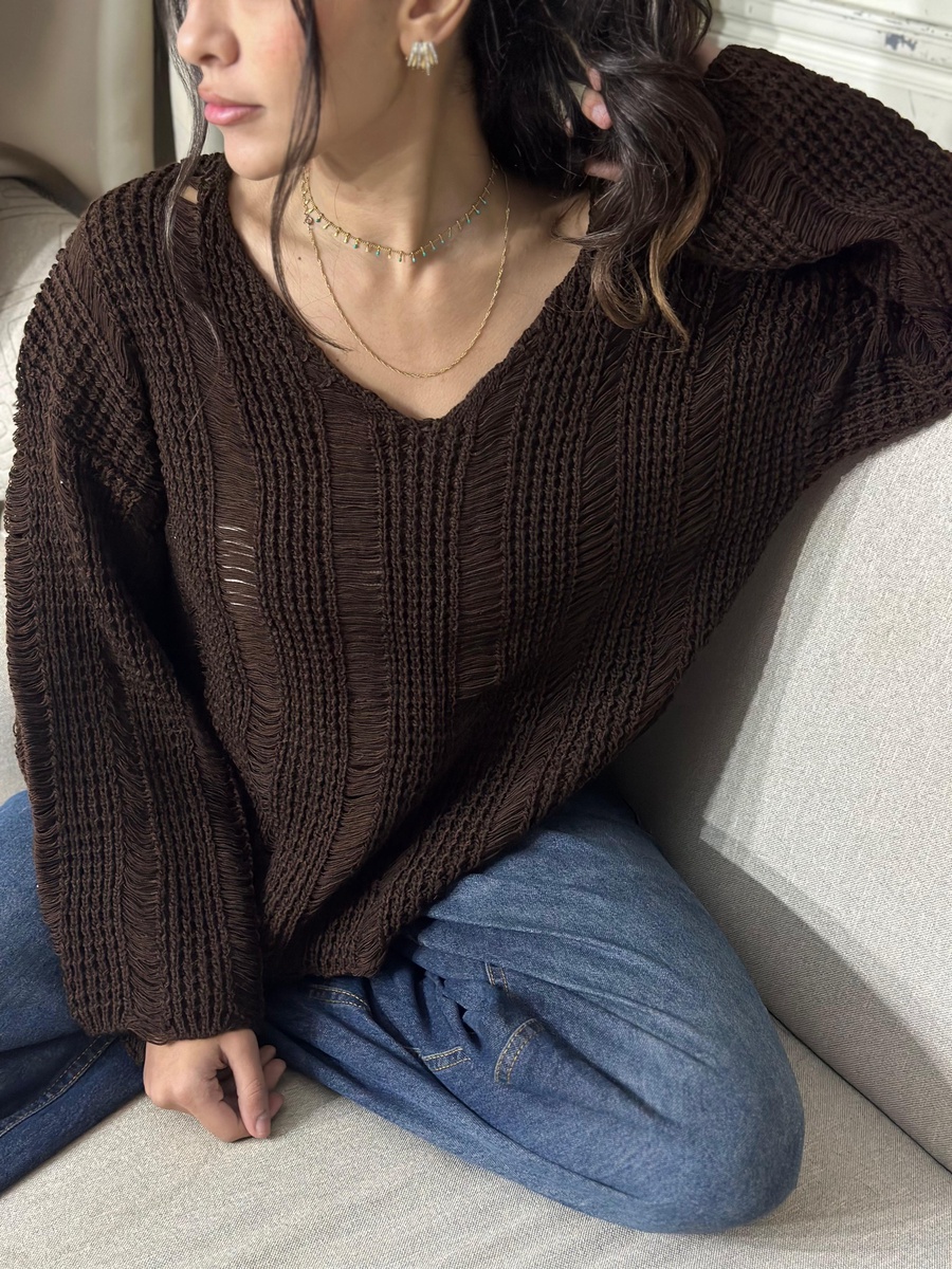 Level up your knitwear game with the Cloudy Distressed Knit