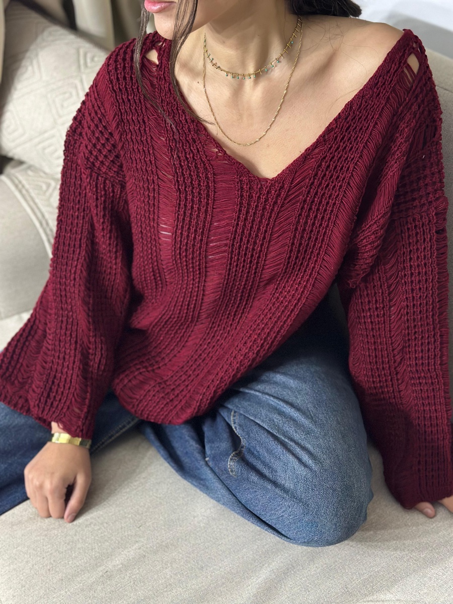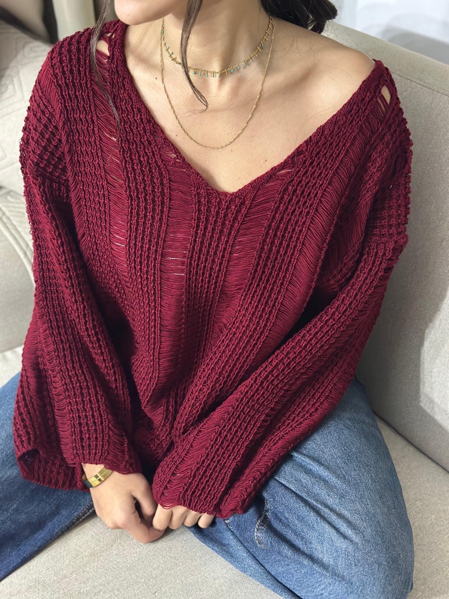 💡 Style Tip: Rock this sweater with dark wide-leg jeans (as shown) and fresh white sneakers for a casual coffee run, or tuck it into leather pants with boots for a night out. Don't forget a simple silver necklace to highlight the neckline