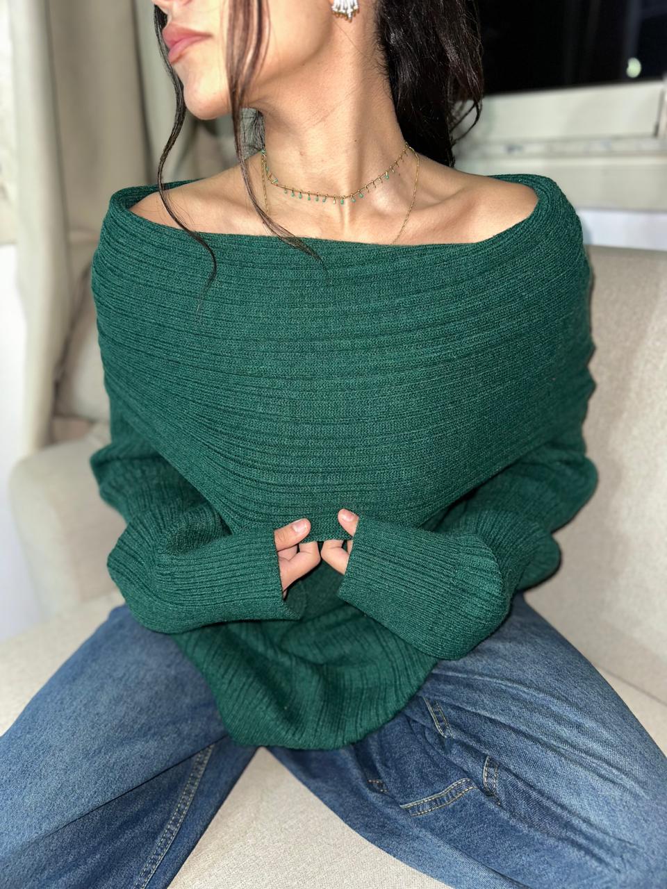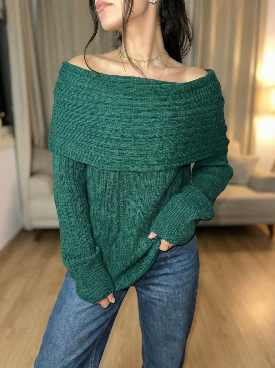 Emerald Green Off-Shoulder Knit