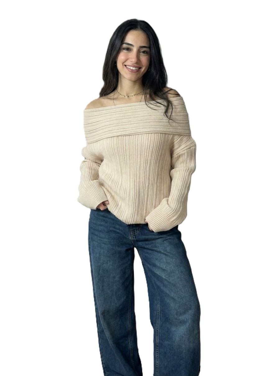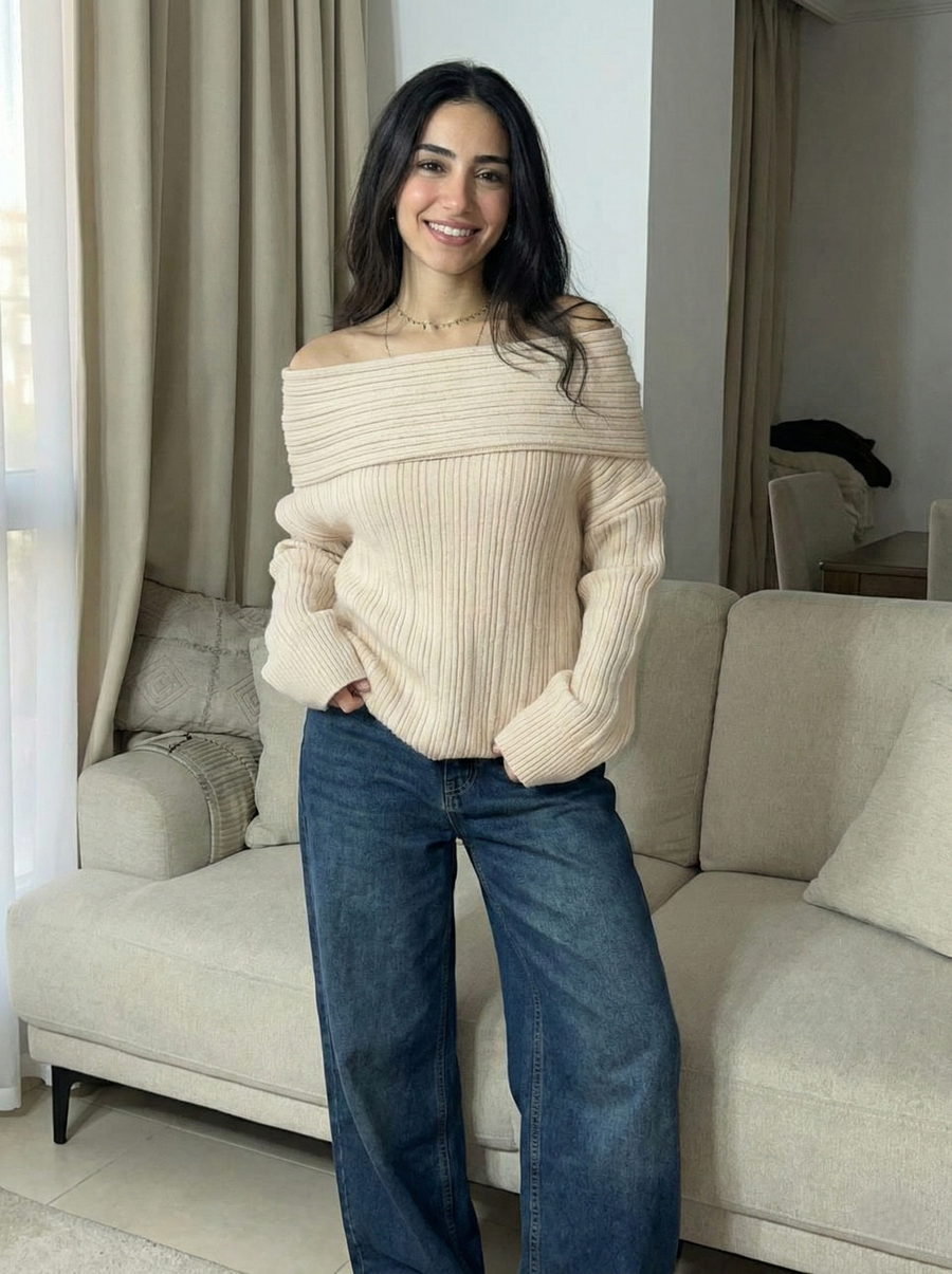 Wrap yourself in the ultimate blend of style and warmth with the Luna Off-Shoulder Ribbed Knit. Designed for the modern muse, this sweater is the perfect statement piece for your transitional wardrobe
